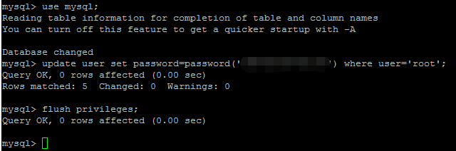 mysql>use mysql; mysql>update user set password=password('your password') where user='root'; mysql>flush privileges;your password為你要修改的密碼