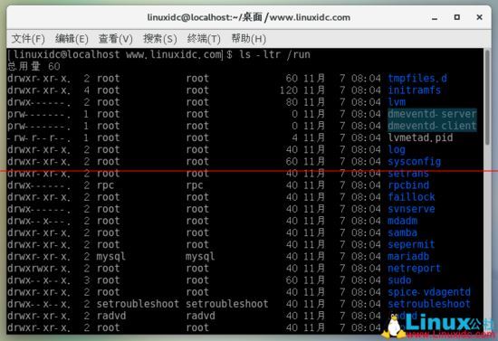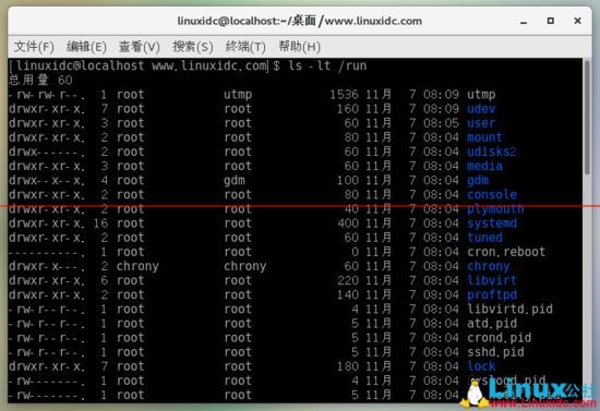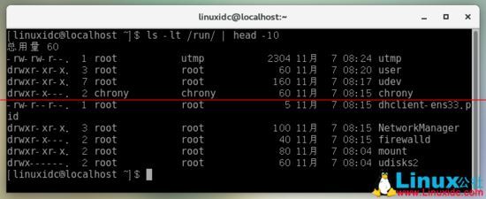 [linuxidc@localhost www.linuxidc.com]$ ls -lt /run
