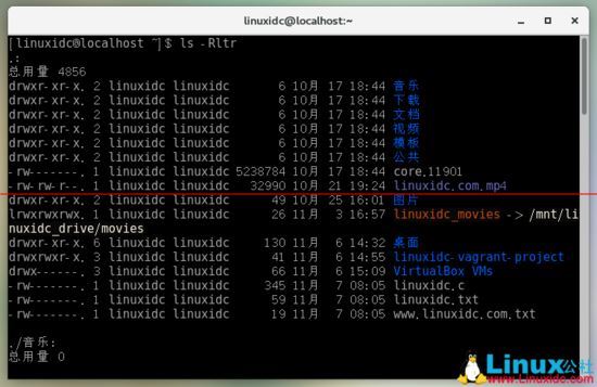 drwxr-xr-x. 2 linuxidc linuxidc 6 10月 17 18:44 音樂drwxr-xr-x. 2 linuxidc linuxidc 6 10月 17 18:44 下載drwxr-xr-x. 2 linuxidc linuxidc 6 10月 17 18:44 文檔drwxr-xr-x. 2 linuxidc linuxidc 6 10月 17 18:44 視頻drwxr-xr-x. 2 linuxidc linuxidc 6 10月 17 18:44 模板drwxr-xr-x. 2 linuxidc linuxidc 6 10月 17 18:44 公共-rw-------. 1 linuxidc linuxidc 5238784 10月 17 18:44 core.11901-rw-rw-r--. 1 linuxidc linuxidc 32990 10月 21 19:24 linuxidc.com.mp4drwxr-xr-x. 2 linuxidc linuxidc 49 10月 25 16:01 圖片lrwxrwxrwx. 1 linuxidc linuxidc 26 11月 3 16:57 linuxidc_movies -> /mnt/linuxidc_drive/movies