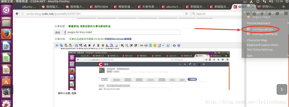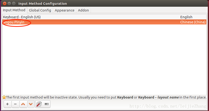 當安裝結束以后,你會看到如下窗口,切記,一定要把系統鍵盤輸入方式從ibus切換為fcitx