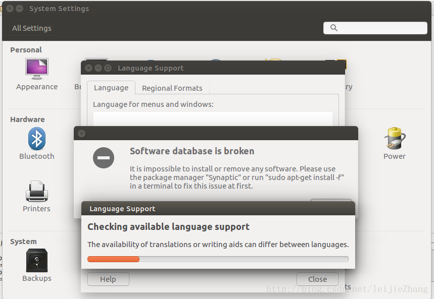 點擊語言支持后,有時候會出現以下錯誤,不要慌,下面有解決方案