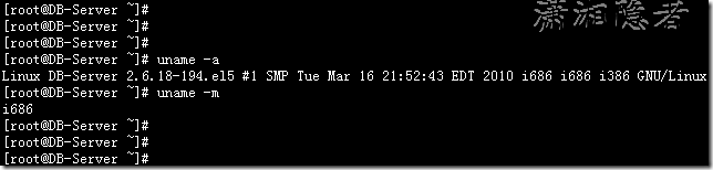 [root@DB-Server ~]# uname -aLinux DB-Server 2.6.18-194.el5 #1 SMP Tue Mar 16 21:52:43 EDT 2010 i686 i686 i386 GNU/Linux[root@DB-Server ~]# uname -m