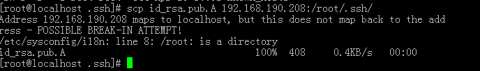 scp ./id_rsa.pub.A 192.168.190.208:/root/.ssh 無需輸入密碼執行成功