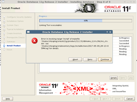 然后在圖形界面點擊‘Retry'就能繼續安裝了。
