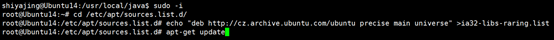 sudo -icd /etc/apt/sources.list.decho "debhttp://cz.archive.ubuntu.com/ubuntu precise main universe">ia32-libs-raring.listapt-get updateapt-get install +包名