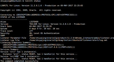 當然監聽器也可以停止(lsnrctl stop),還有重啟,自行百度。