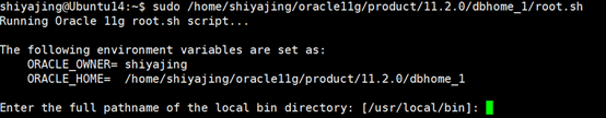 sudo /home/shiyajing/oracle11g/product/11.2.0/dbhome_1/root.sh(主要)