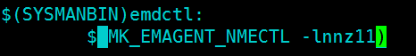 將文件中的$(MK_EMAGENT_NMECTL)修改成$(MK_EMAGENT_NMECTL -lnnz11)即可(應該有兩處需要修,也有可能只有一處)。