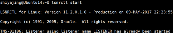 TNS-01106:使用偵聽器名稱偵聽器的LISTENER已經啟動