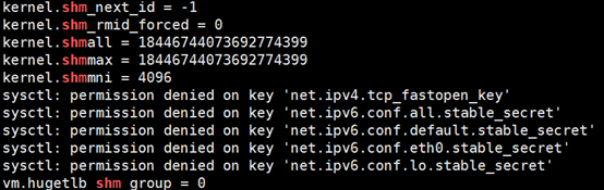 kernel.sem =32000102400000050032000kernel.shmall =18446744073692774399kernel.shmmax =18446744073692774399kernel.shmmni =4096fs.file-max =96898fs.aio-max-nr =65536net.ipv4.ip_local_port_range= 3276860999net.core.rmem_max= 212992net.core.rmem_default= 212992net.core.wmem_default= 212992net.core.wmem_max= 212992