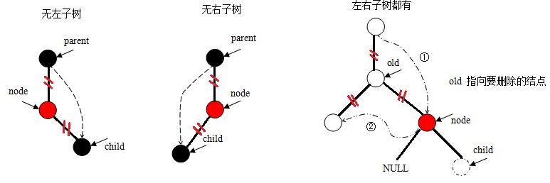 像二叉查找樹的刪除操作一樣,首先需要找到所需刪除的結(jié)點,然后根據(jù)該結(jié)點左右子樹的有無分為三種情形: