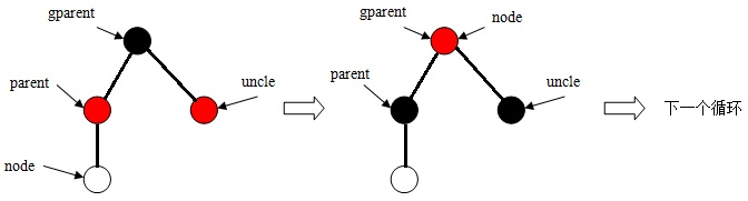 函數(shù)rb_insert_color使用while循環(huán)不斷地判斷雙親結(jié)點是否存在,且顏色屬性為紅色。