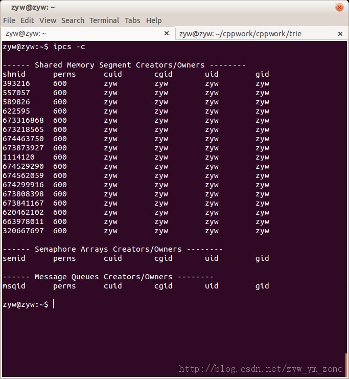 ipcs -c 輸出ipc方式的創建者/擁有者