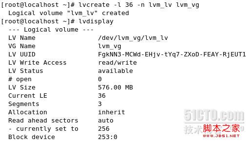 3.接下來我們利用PE塊的數量來創建lv由于每個pv能劃分出的PE是12個因此要創建一個600M的需要36個PE。命令如下lvcreate -l 36 -n lvm_lv lvm_vg將建立的lv格式化并掛載到/mnt/lvm下。并且在其中建立了三個文件夾aaa bbb ccc。