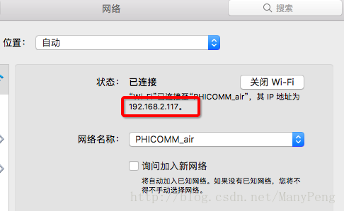 首先,需要知道電腦的ip地址,我的電腦上通過系統偏好設置->網絡可以查看