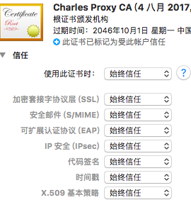 完成這一步的設置后,這個根證書應該會跟我上面一個截圖一樣,而不會顯示紅叉
