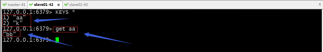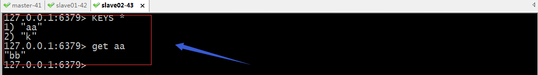 驗證:在master上寫數據,看看是否能夠及時同步到兩個slave上?