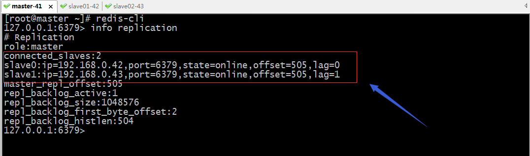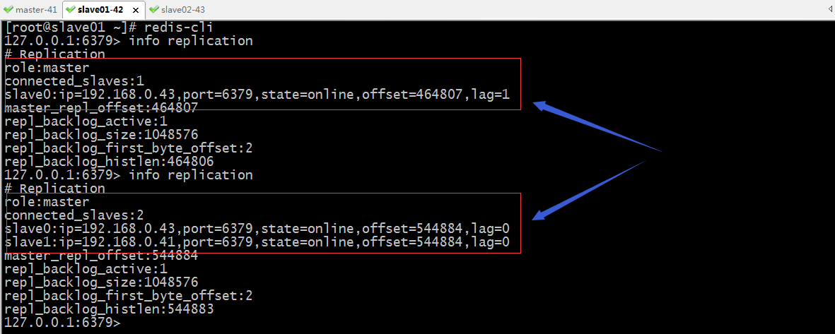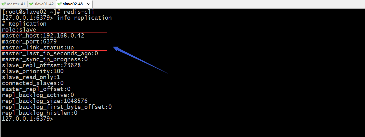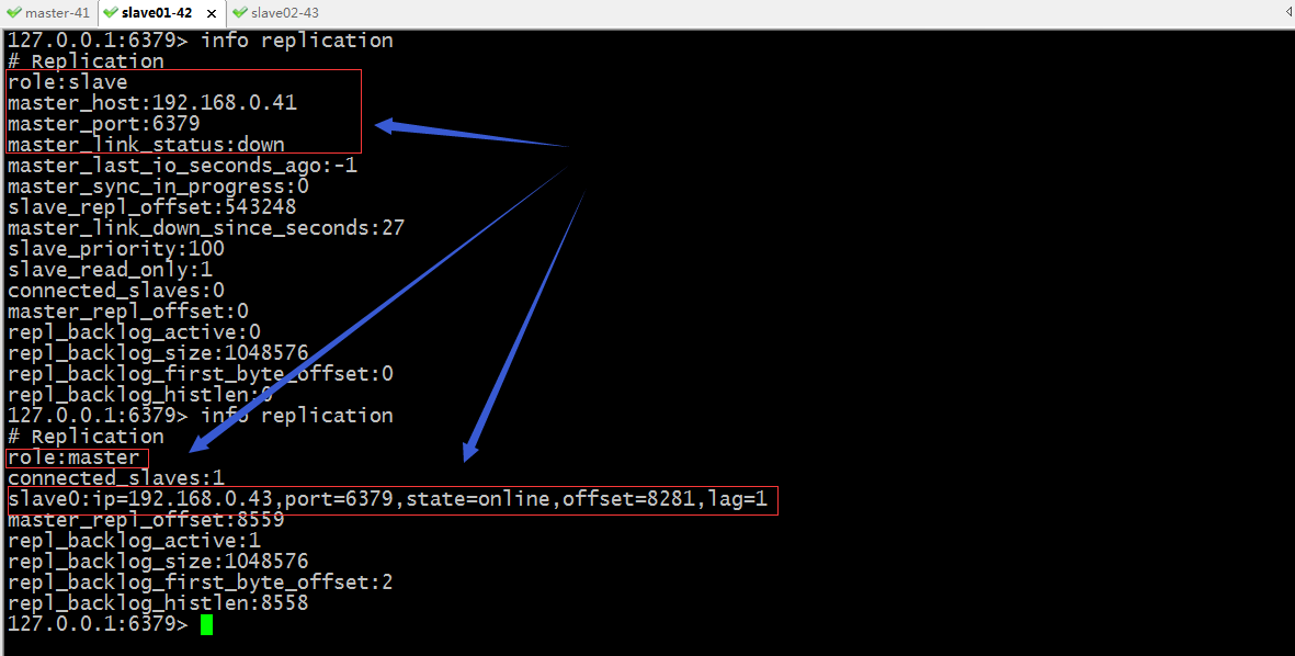 在192.168.0.43上查看主從信息,看看是否指向新的master?