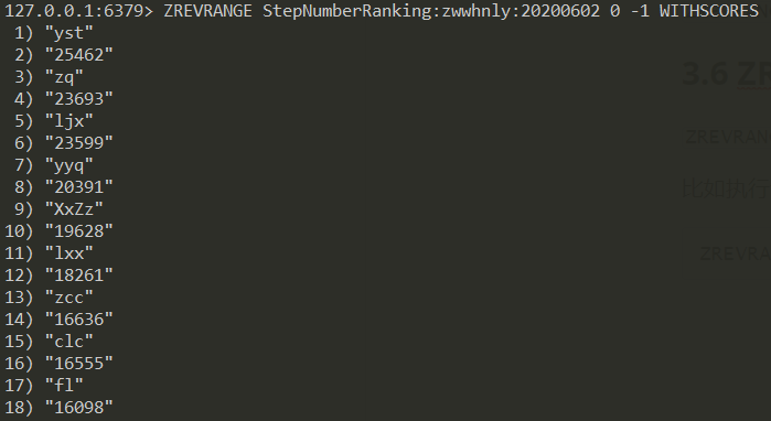 ZREVRANGE StepNumberRanking:zwwhnly:20200602 0 -1 WITHSCORES