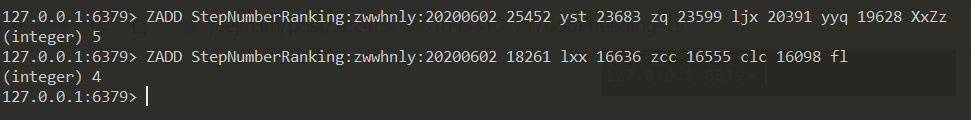ZADD StepNumberRanking:zwwhnly:20200602 18261 lxx 16636 zcc 16555 clc 16098 fl