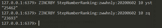ZINCRBY StepNumberRanking:zwwhnly:20200602 10 zq