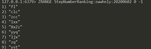 ZRANGE StepNumberRanking:zwwhnly:20200602 0 -1