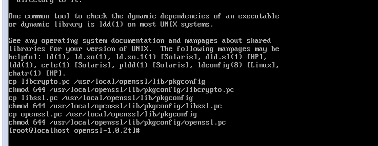 mkdir /usr/local/openssl //創(chuàng)建openssl工作目錄cp openssl-1.0.2t.tar.gz /usr/local/openssl //將安裝包拷貝到該目錄下cd /usr/local/openssl //進入openssl工作目錄tar -vxf openssl-1.0.2t.tar.gz // 解壓縮cd openssl-1.0.2t/./config -fPIC --prefix=/usr/local/openssl enable-shared./config -tmake && make install