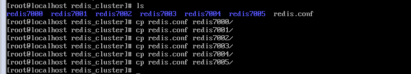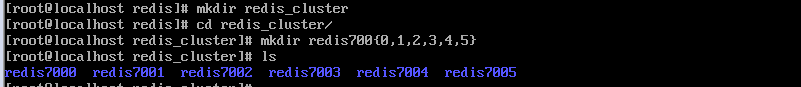 cd /usr/local/redismkdir redis_cluster //在redis安裝目錄下創(chuàng)建redis_cluster目錄mkdir redis700{0,1,2,3,4,5}//批量創(chuàng)建六個redis節(jié)點工作目錄,三主三從。