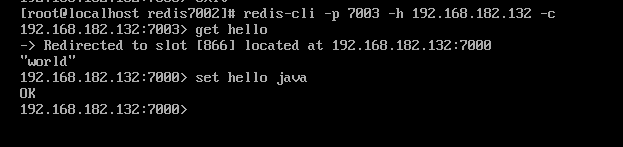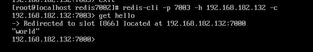 使用集群方式連接集群redis-cli -p 7003 -h 192.168.182.132 -c(7003是7000的備機)