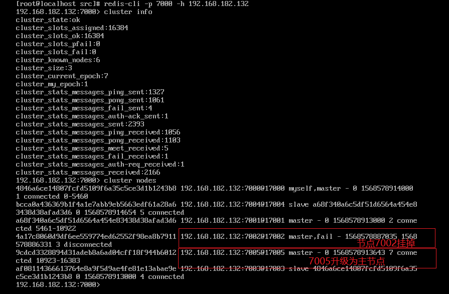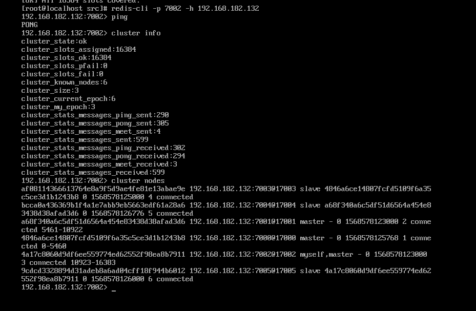 redis-cli -p 7000 -h 192.168.182.132 -ccluster nodes