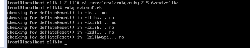 cd /usr/local/ruby/ruby-2.5.6/ext/zlib/ruby extconf.rb