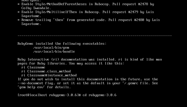 cd /usr/local/rubygems/rubygems-3.0.6ruby setup.rb