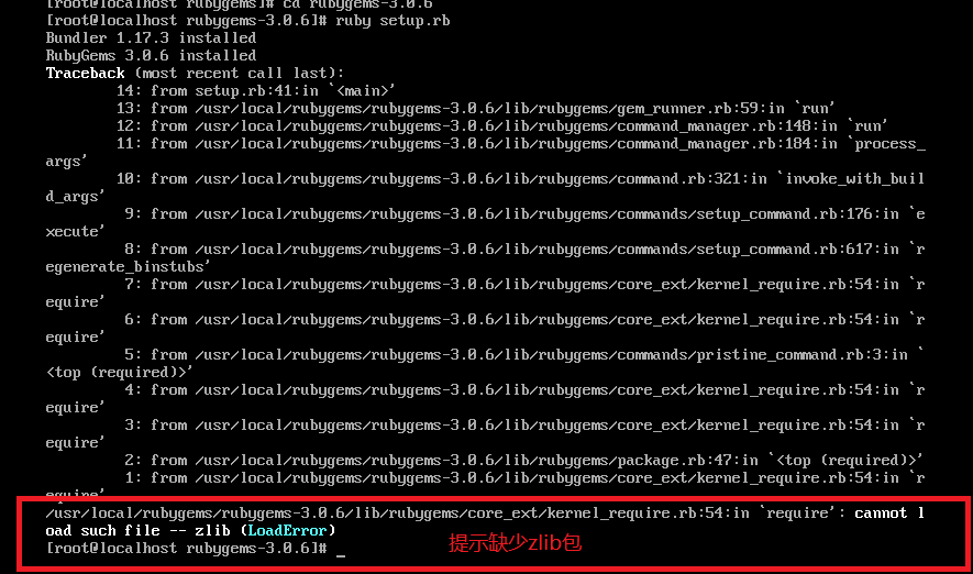 zlib的錯誤都解決以后再繼續(xù)重新安裝rubygems。