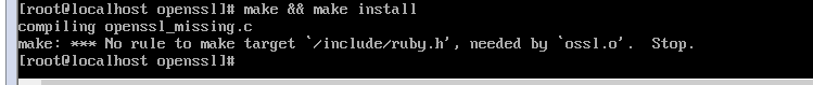 cd /usr/local/ruby/ruby-2.5.6/ext/openssl/ruby extconf.rb --with-openssl-include=/usr/local/openssl/include/ --with-openssl-lib=/usr/local/openssl/lib 此時會生成Makefile文件,下面出現(xiàn)的錯誤需要修改本文件make && make install