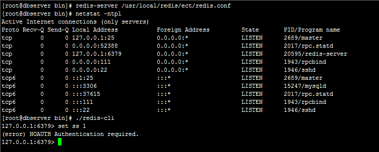 b.再次啟動(dòng)redis服務(wù),并指定啟動(dòng)服務(wù)配置文件,檢查是否啟動(dòng)
