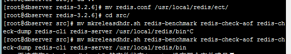 mv redis.conf /usr/local/redis/ect/cd /srcmv mkreleasdhdr.sh redis-benchmark redis-check-aof redis-check-dump redis-cli redis-server /usr/local/redis/bin