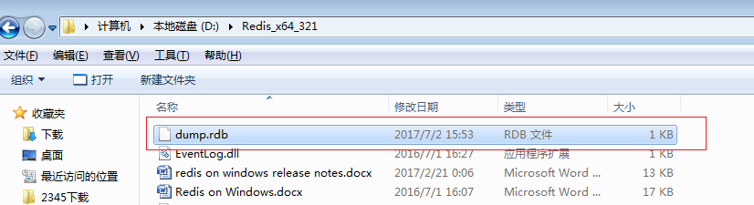 現在到D:/Redis_x64_321/目錄看,目錄下出現了Redis的快照文件dump.rdb: