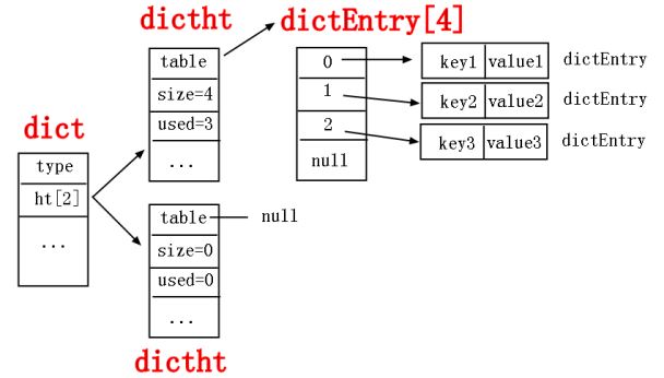 typedef struct dictht {dictEntry **table; unsigned long size; unsigned long sizemask; unsigned long used; } dictht;<1> dictEntry **table;