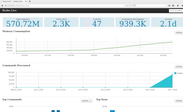 這個程序就是用來調用redis的monitor命令來收集redis的命令來進行統計,所以這個程序一定要保持恒久執行,而不像官網上設置120s。