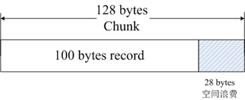 當Memcached接收到客戶端發送過來的數據時首先會根據收到數據的大小選擇一個最合適的Slab Class,然后通過查詢Memcached保存著的該Slab Class內空閑Chunk的列表就可以找到一個可用于存儲數據的Chunk。當一條數據庫過期或者丟棄時,該記錄所占用的Chunk就可以回收,重新添加到空閑列表中。從以上過程我們可以看出Memcached的內存管理制效率高,而且不會造成內存碎片,但是它最大的缺點就是會導致空間浪費。因為每個Chunk都分配了特定長度的內存空間,所以變長數據無法充分利用這些空間。如圖 所示,將100個字節的數據緩存到128個字節的Chunk中,剩余的28個字節就浪費掉了。