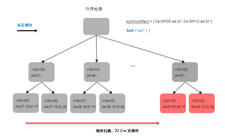 建立組合索引 {lastModifiedDay:1, oid:1},相應(yīng)的查詢條件改為: