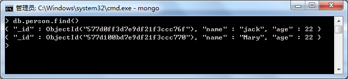 db.person.insert({"name":"jack","age":22})db.person.insert({"name":"Mary","age":22})