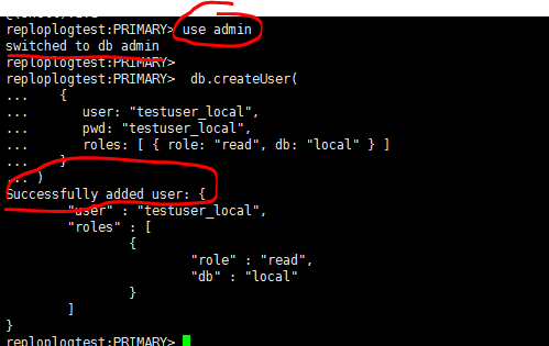 db.createUser({user: "testuser_local",pwd: "testuser_local",roles: [ { role: "read", db: "local" } ]})報錯信息