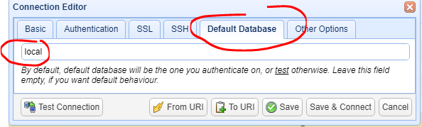Default Database 的編輯項,選擇oplog所在的local數據庫