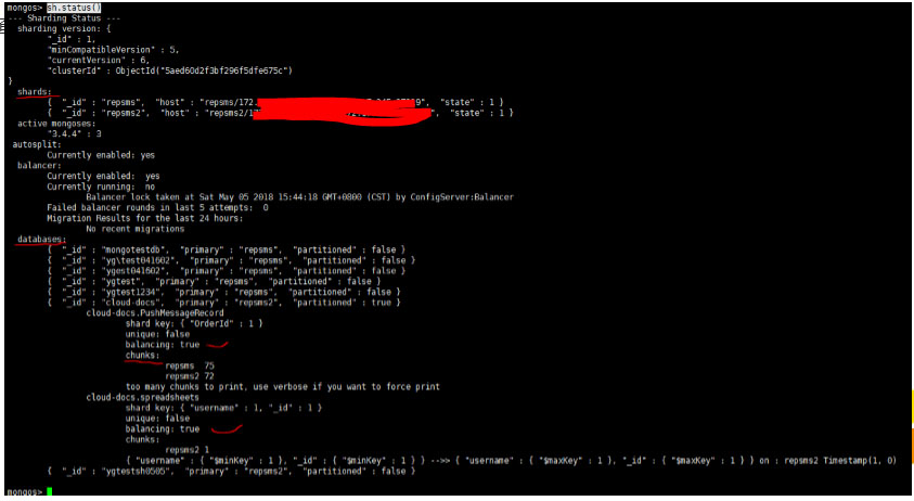 db.chunks.find({"shard" : "repsms2","ns" : "cloud-docs.PushMessageRecord"}).pretty()五. 備注