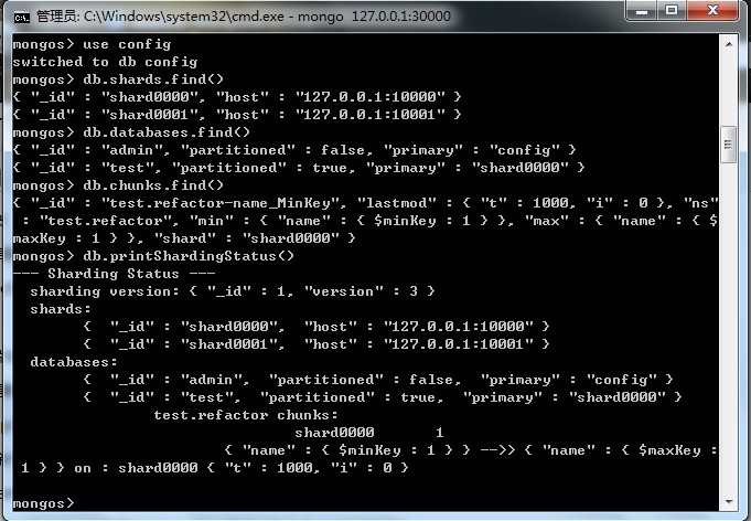 首先要啟動配置服務器和mongos.配置服務器需要先啟動.因為mongos會用到其上的配置信息.