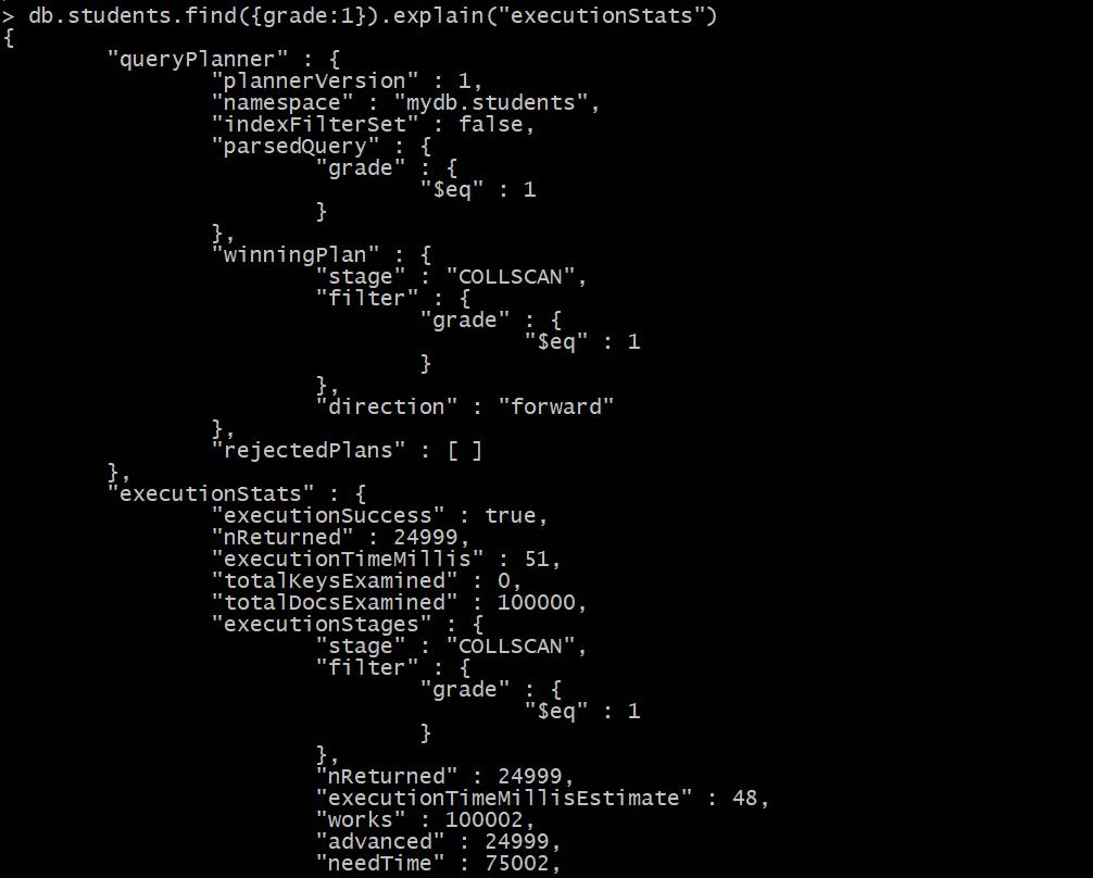 我們的目的是要記錄執行find方法的耗時時間,所以用executionStats模式就可以了。