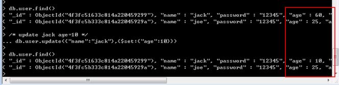 自增$inc指定的值,如果“文檔”中沒(méi)有此key,則會(huì)創(chuàng)建key,下面的例子一看就懂。