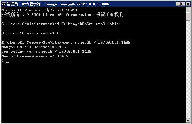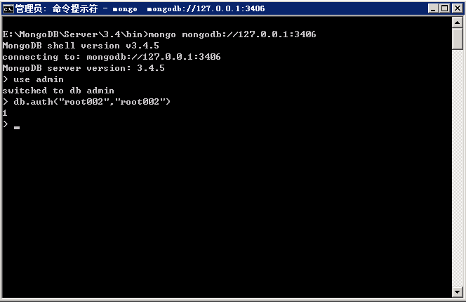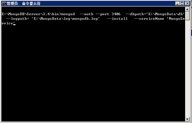 輸入:mongod --auth --port 3406 --dbpath=庫地址 --logpath= 全地址 --install --serviceName "自定義名稱"
