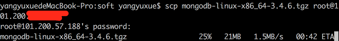 cd "安裝包所在文件夾" // 去你剛才安裝包放的位置scp "本地文件" root@你的IP // 回車輸入密碼開始傳送